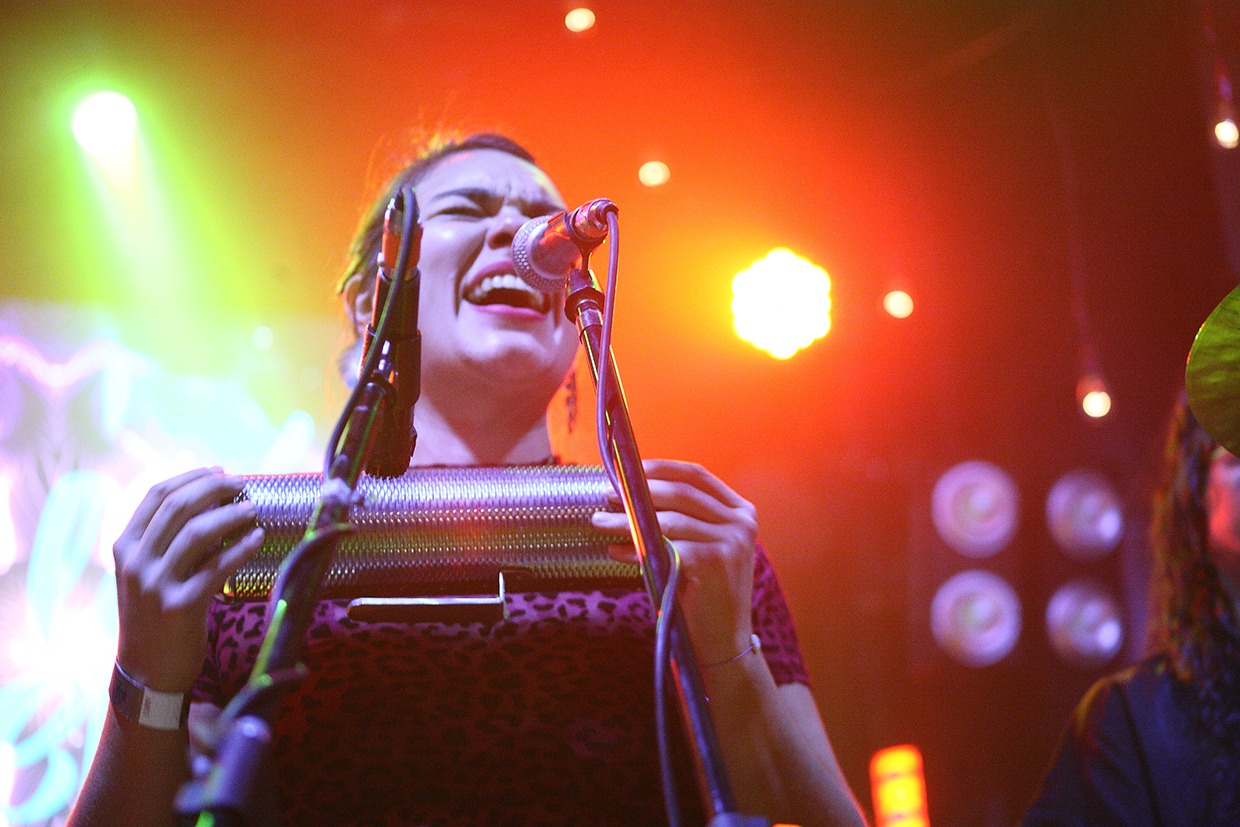 Mientras se esuchaban los seis tracks del Lado B, el equipo de instrumentistas ponían todo al tiro en el escenario del Hilvana para disfrutar de una presentación, breve pero sustanciosa de la aventura de los hermanos Gama por su paso por Colombia.