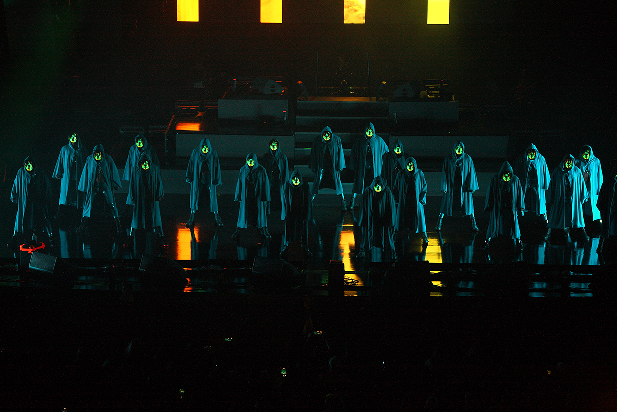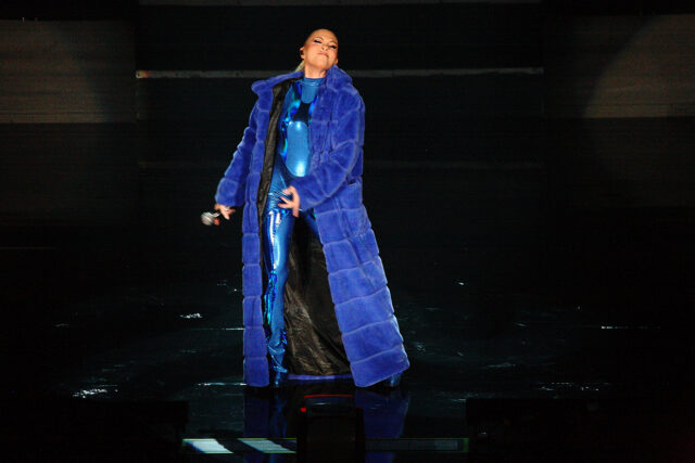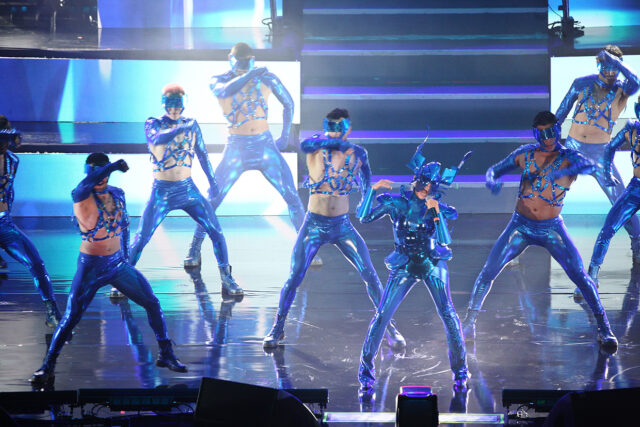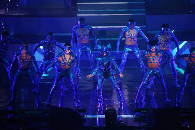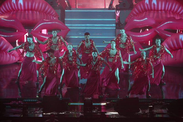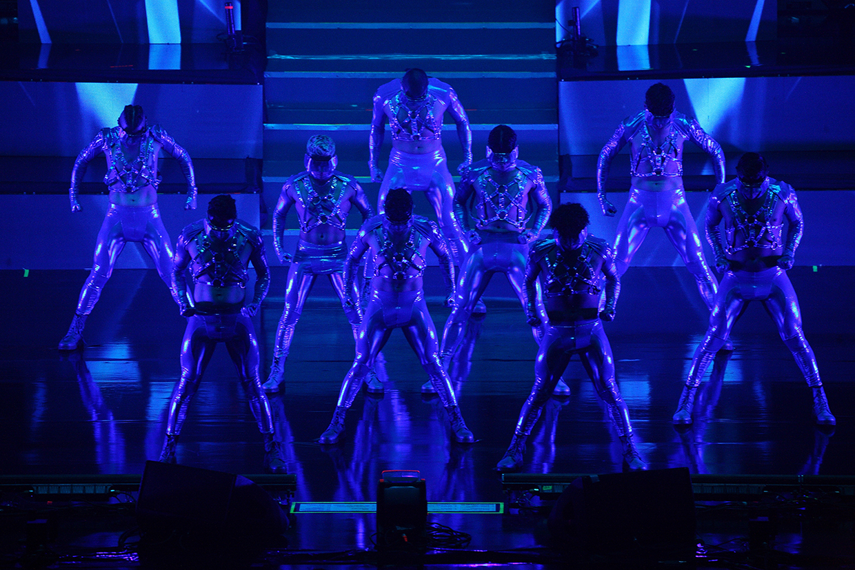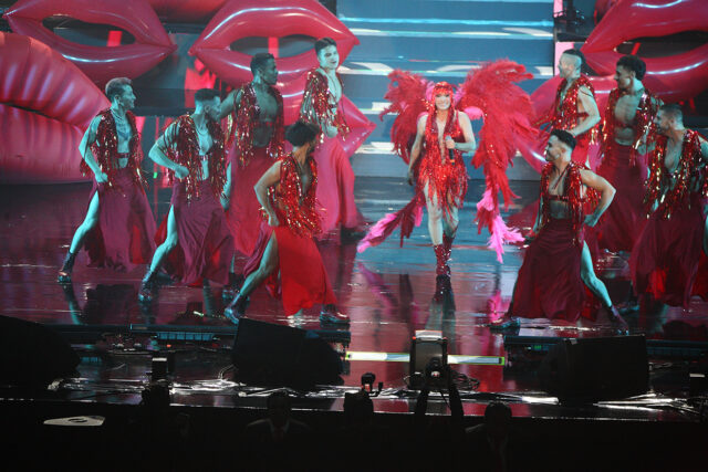 Así, la jarocha ataviada ya fuera con un traje futurista, un abrigo elegante o sensual, tipo ángel rojo, agasajó al respetable con coreografías vistosas con una decena de bailarines que hicieron lucir a nuestra güera que bien pued einterpretar temas de corte pop, que baladas y hasta regional mexicanas.