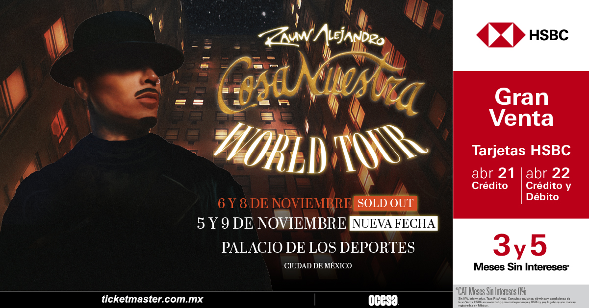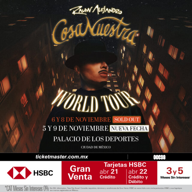 La exitosa gira mundial Cosa Nuestra World Tour del superestrella puertorriqueño Rauw Alejandro, ganador del Latin GRAMMY® y cuatro veces nominado al GRAMMY®, suma más fechas en México como parte de su extensión por Latinoamérica. El tour es producido por Live Nation. Rauw llevará su electrizante espectáculo en vivo a Latinoamérica este otoño.
