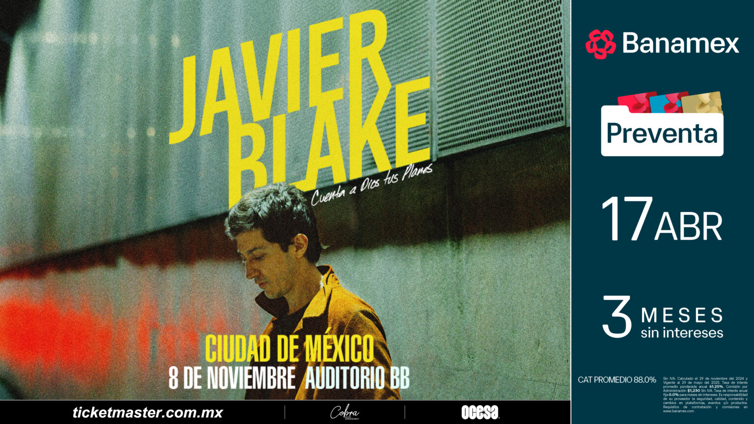 Este show será mucho más que un concierto: será una noche para cantar, sentir y revivir todo lo que la música de Javier Blake nos ha hecho vivir. Asegura tu lugar en esta velada donde el rock en español vuelve a brillar como nunca. Los boletos estarán en preventa Banamex el 17 de abril, y un día después los podrás adquirir en las taquillas del inmueble o a través de www.ticketmaster.com.mx.