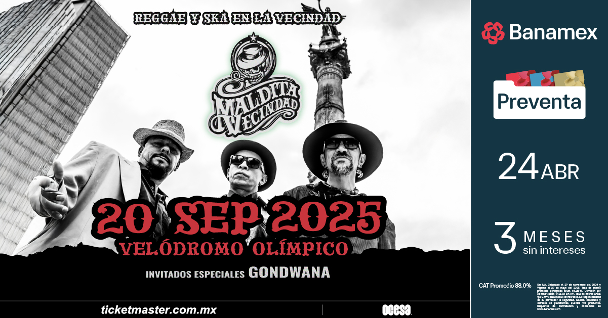 Maldita Vecindad presenta “Reggae y Ska en la Vecindad” el próximo 20 de septiembre en el Velódromo en la Ciudad de México. Una fiesta de barrio con alma de “Solín”, ritmo de “Don Palabras” y el corazón latiendo al ritmo del ska que ha marcado generaciones. Y como broche de oro a esta velada, la icónica banda de reggae Gondwana se unirá al espectáculo, aportando su inconfundible vibra y melodías a esta celebración musical.