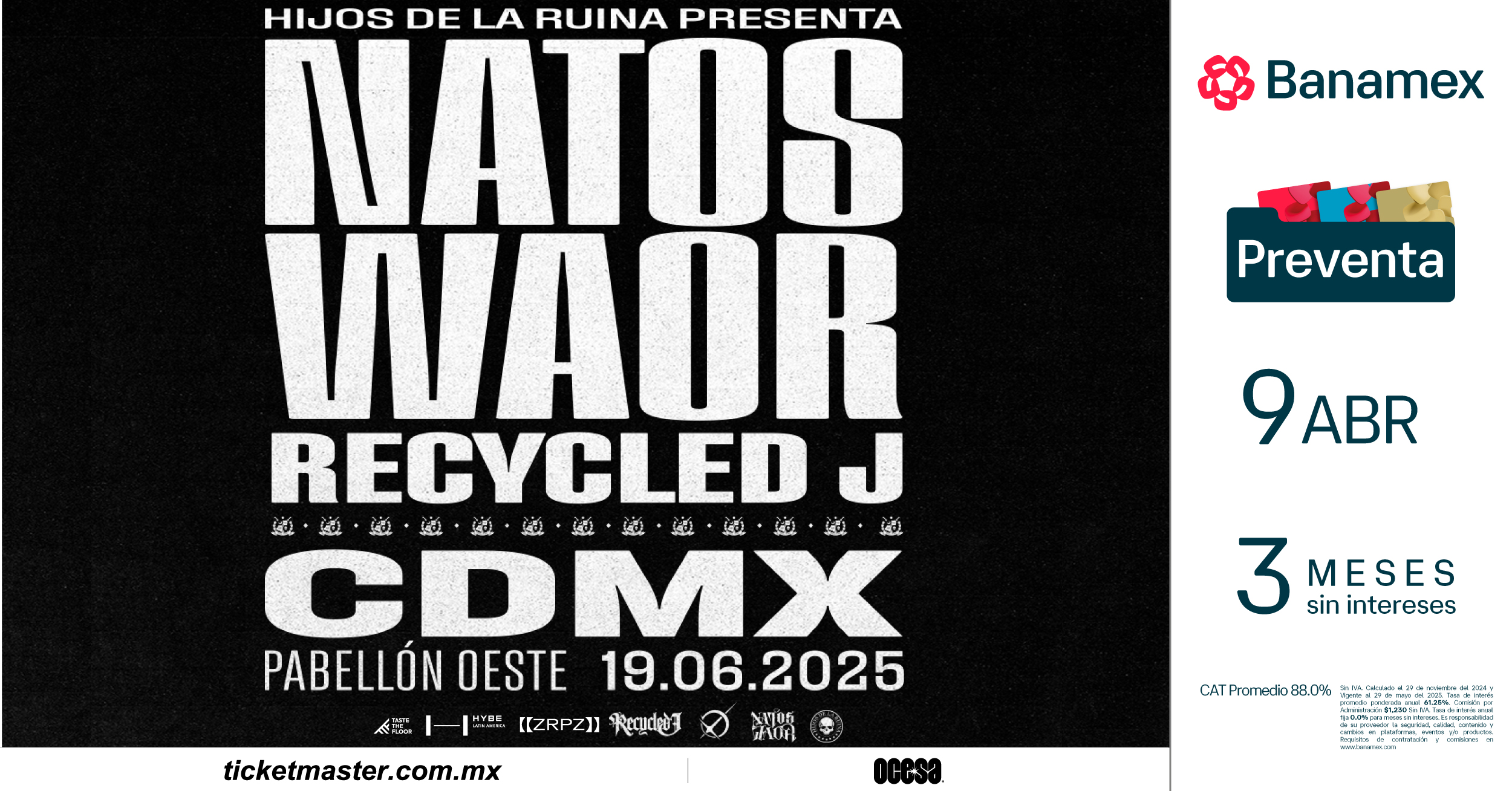 Preventa Banamex: Miércoles 9 de Abril / 11:00 AM