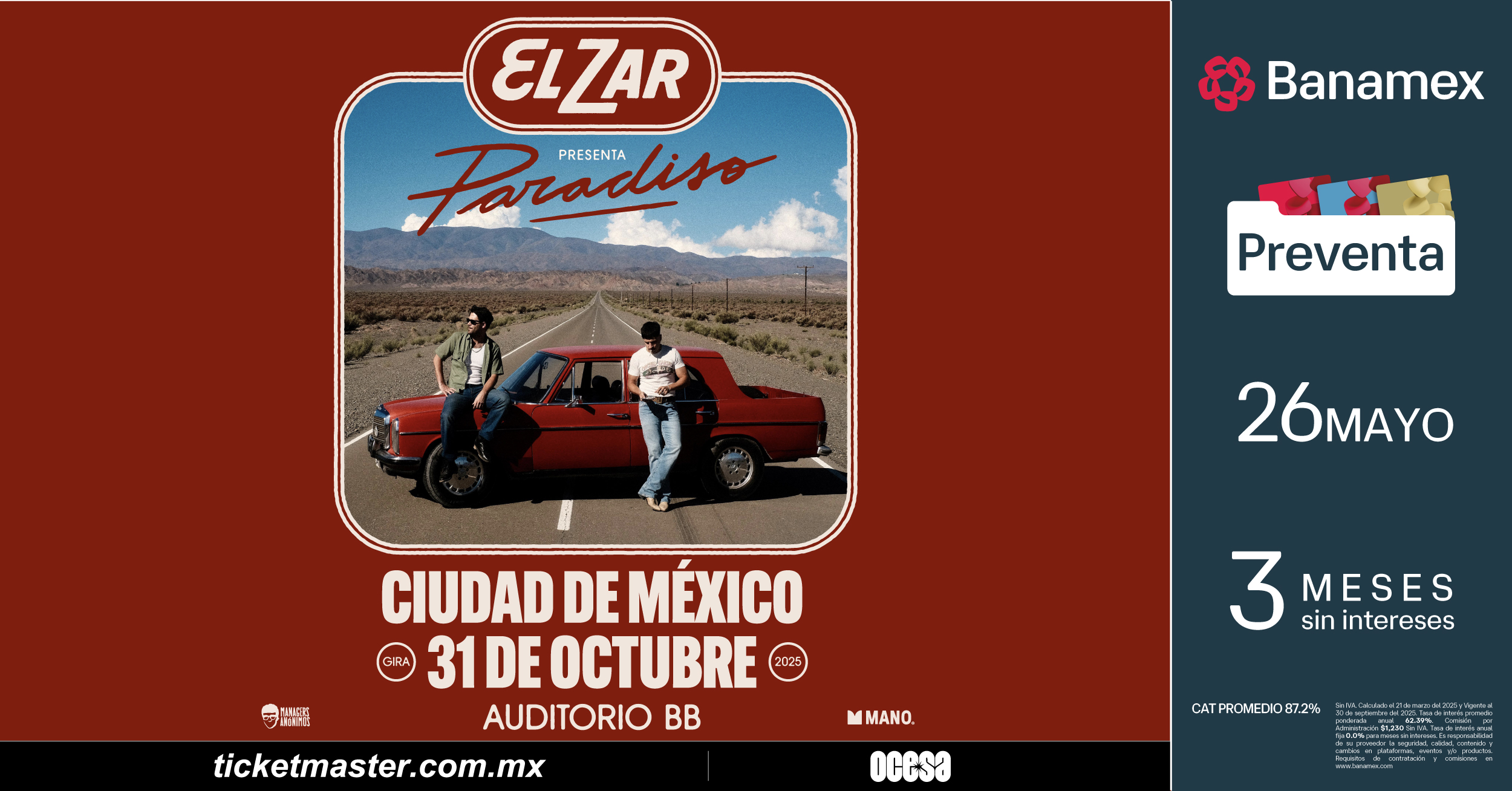 Preventa Banamex: 26 de mayo, 11:00 a.m.