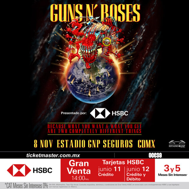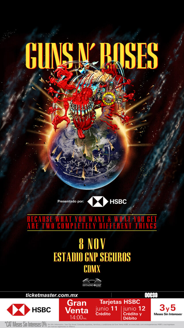 Guns N’ Roses anunció la segunda parte de su gira mundial 2025, con nuevas fechas programadas para este otoño en México, Centroamérica y Sudamérica. Esta nueva serie de conciertos sigue al éxito de la masiva gira de la banda por Europa y Oriente Medio en 2025, la cual está actualmente en curso y se extenderá hasta finales del verano.