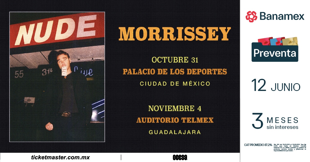 Como vocalista principal de The Smiths, marcó para siempre la historia de la música con solo cuatro álbumes. Como solista, ha consolidado un sonido que aún hoy resuena, convirtiéndolo en una de las voces más aclamadas de las últimas cuatro décadas. Cuando el sencillo debut de The Smiths, “Hand In Glove”, apareció por primera vez, el panorama musical cambió para siempre y lanzó un rico catálogo de canciones que incluyen himnos como “This Charming Man”, “¿How Soon Is Now?” y “There Is A Light That Never Goes Out”. Cuando Morrissey se embarcó en su carrera en solitario, su racha de canciones icónicas e influyentes continuó con “Suedehead”, “Everyday Is Like Sunday”, “Irish Blood, English Heart”, “First of the Gang to Die”, y muchas, muchas más.