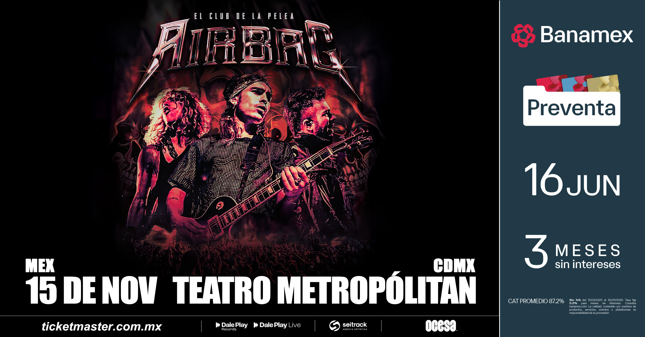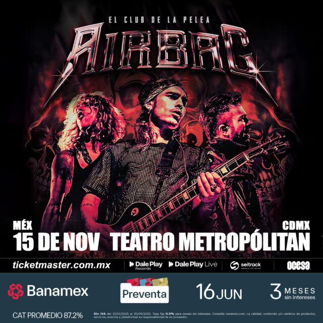Las diez canciones nuevas de rock al estilo Airbag, harán que resuene el Teatro Metropólitan, el próximo 15 de noviembre. Adquiere tus boletos en Preventa Banamex a partir del 13 de junio;mientras que la venta general será un día después en las taquillas del inmueble o a través de Ticketmaster.