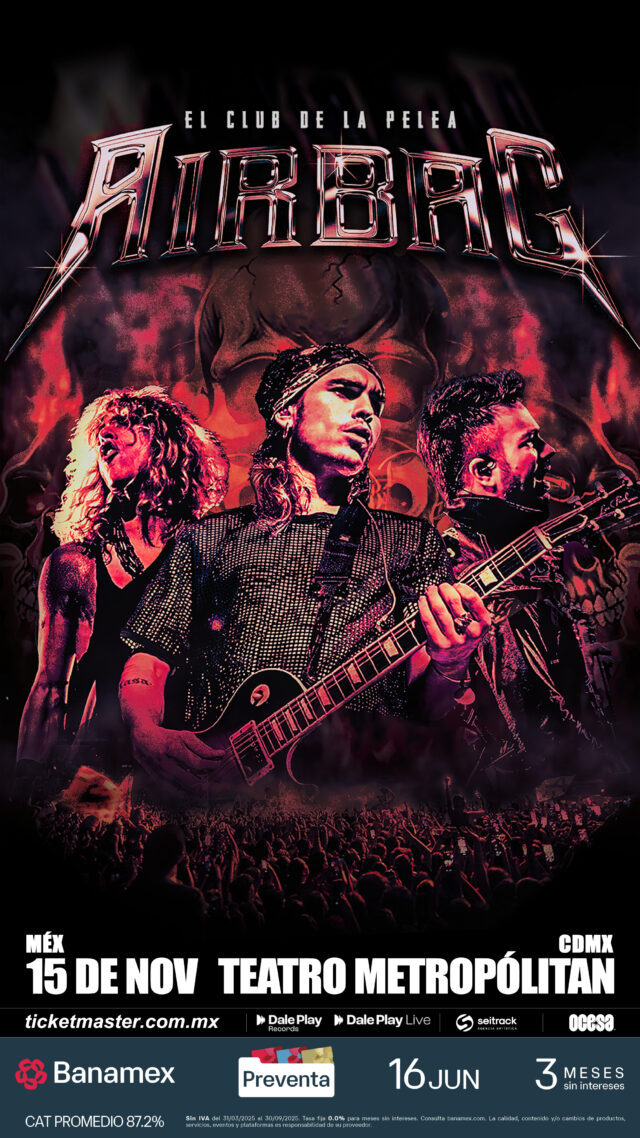 Airbag se ha ganado el corazón del público mexicano con su energía arrolladora y presentaciones inolvidables. Guido, Patricio y Gastón nos han regalado momentos memorables, desde su impactante actuación en Pulso GNP 2022 hasta su vibrante concierto en solitario en el Lunario en 2024. Ahora, este talentoso trío regresa a México para hacernos vibrar de nuevo con los éxitos que tanto amamos.