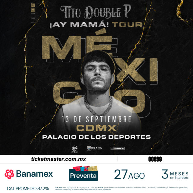 BOLETOS: Las entradas para la gira ¡AY MAMÁ! de Tito Double P en Ciudad de México y Guadalajara estarán disponibles en la Preventa Banamex a partir del 27 de agosto, mientras que la venta general para el resto de las ciudades será a partir del 28 de agosto a las 11 a.m. en las taquillas del inmueble o a través de https://www.titodoublep.com/