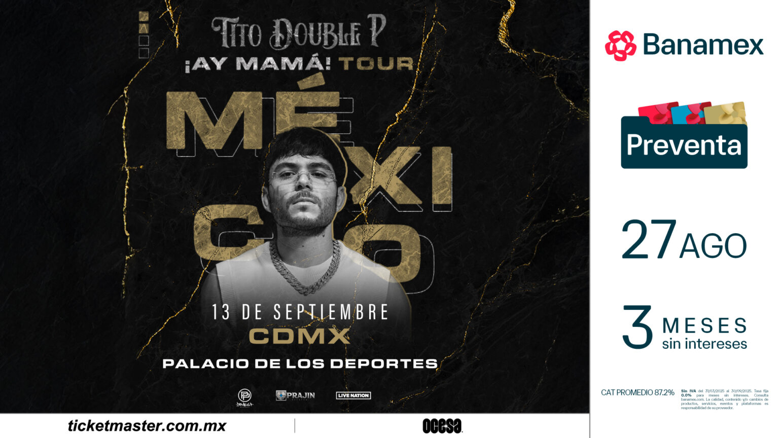 Preventa Banamex: 27 de Agosto / 11:00 AM