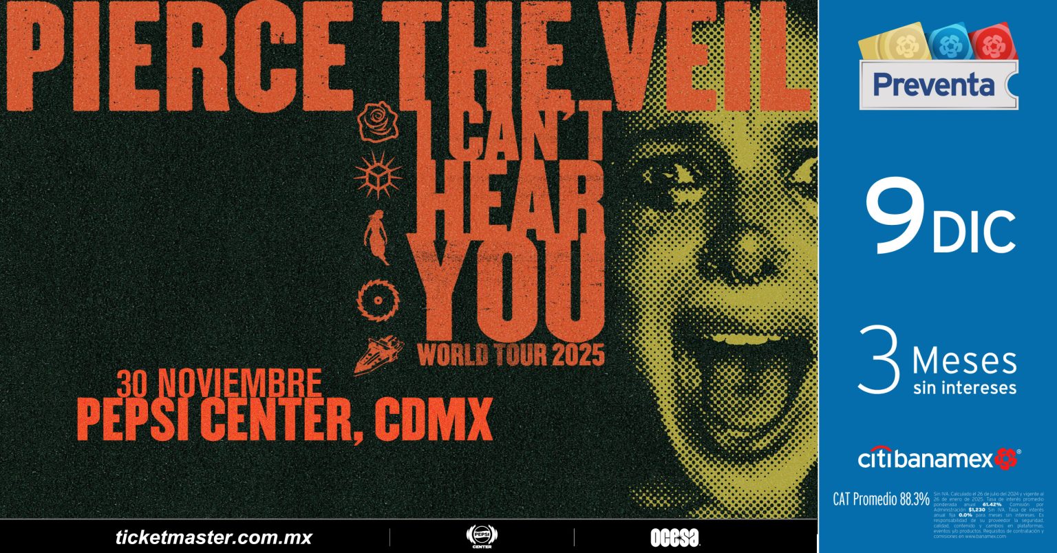 A lo largo de la gira I Can’t Hear You Tour, Pierce The Veil no sólo interpretará canciones de su álbum más reciente, el éxito de 2023, Jaws of Life, sino también temas de sus cinco lanzamientos de estudio, llevando a los fans de regreso a los primeros días con A Flair for the Dramatic, pasando por el exitoso Selfish Machines de 2010, Collide with the Sky (que incluye “King For A Day”), y la intensidad cruda de Misadventures. Tanto si eres un fan de Pierce The Veil toda la vida, como si eres nuevo, el setlist promete un viaje a través de la evolución de su sonido post-hardcore, mostrando la misma energía desbordante y profundidad emocional que los ha consolidado como iconos del género.