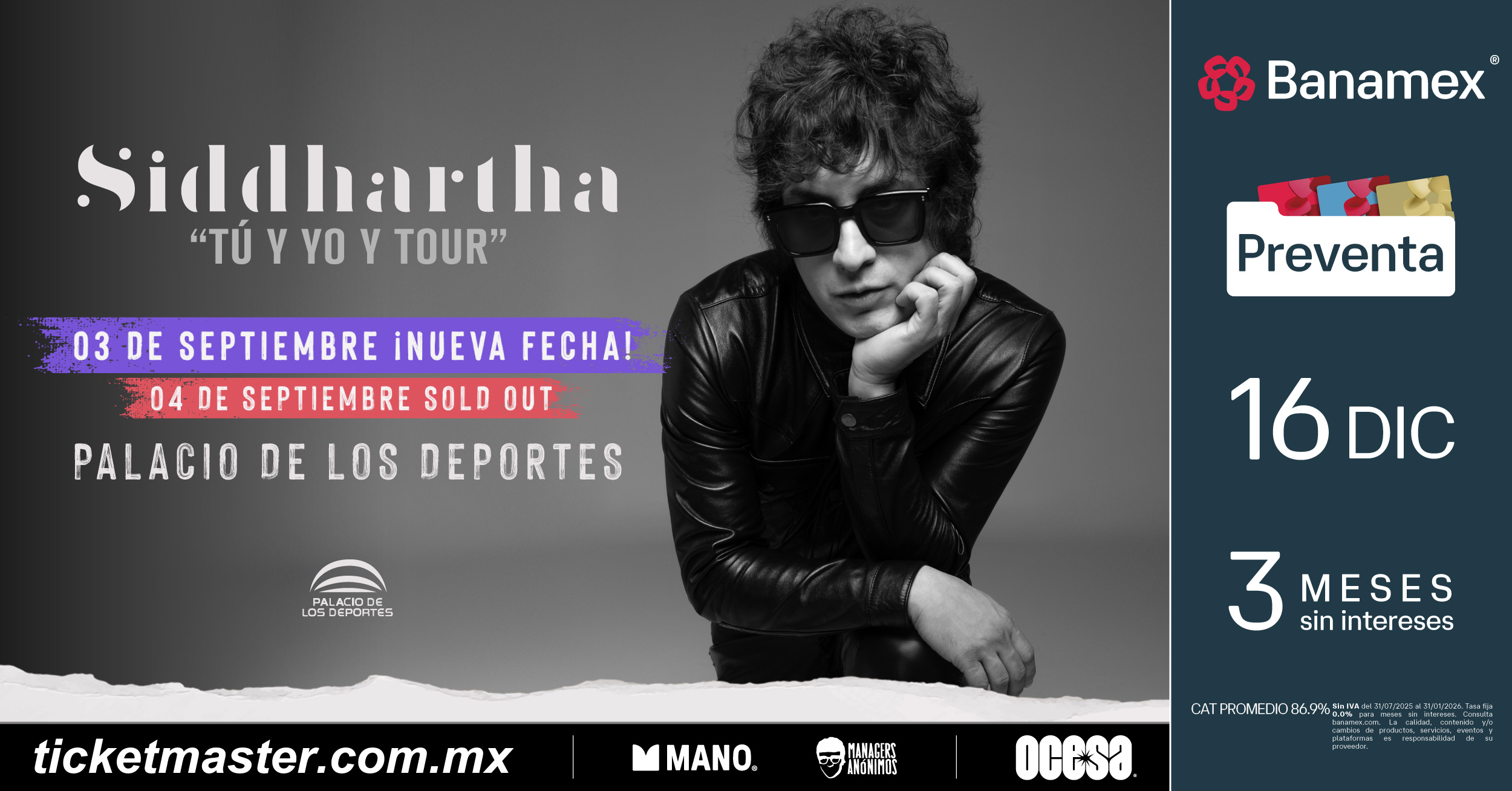 Si quieres ser de los primeros en escuchar el material inédito del artista y disfrutar de una noche más de conexión pura con canciones que ya son himnos, tienes que estar en el Palacio de los Deportes. ¡Corre por tus boletos y sé parte de esta nueva era musical de Siddhartha!