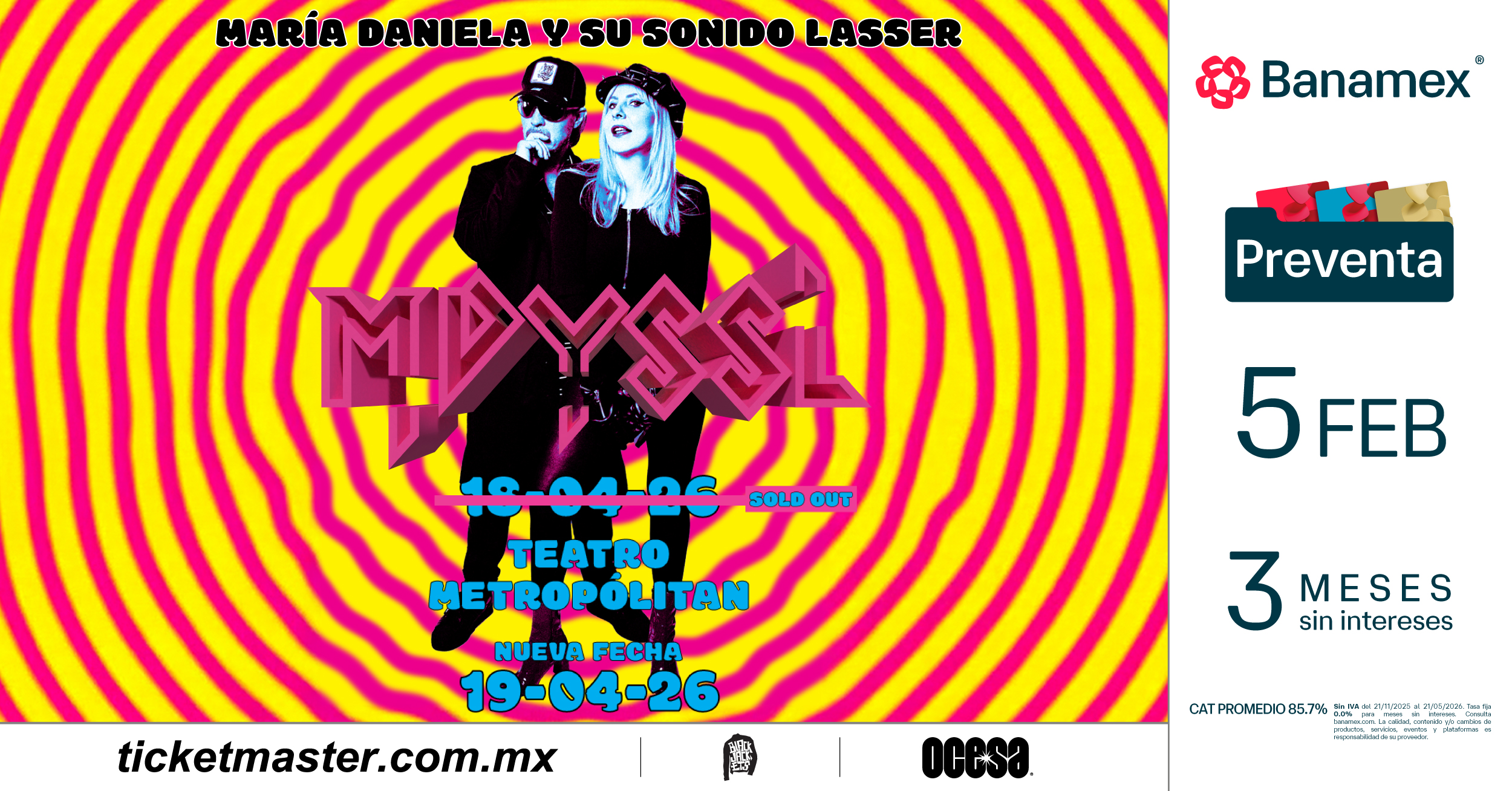 María Daniela y su Sonido Lasser llegó para regresarnos a los 2000 y, ahora, sabemos que están más vivos que nunca. Después de agotar las entradas para su primer show en el Teatro Metropólitan, el dueto anuncia que estarán una noche más en este gran escenario el próximo 19 de abril. Esta es tu oportunidad de ser parte de este gran regreso, corre por tus boletos y revive una época que jamás se fue.