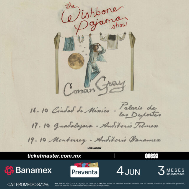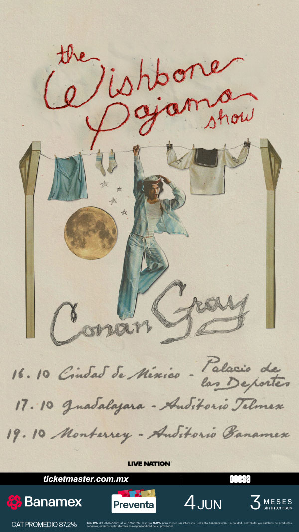 Conan Gray: The Wishbone Pajama Show arrancará el 11 de septiembre haciendo paradas en Estados Unidos, incluyendo su primera presentación en el icónico Red Rocks Amphitheatre el 6 de octubre. La gira concluye con el debut de Conan en México, incluyendo presentaciones principales en la Ciudad de México, Guadalajara y Monterrey. A continuación, se detalla la ruta completa de la gira promocionada por Live Nation.