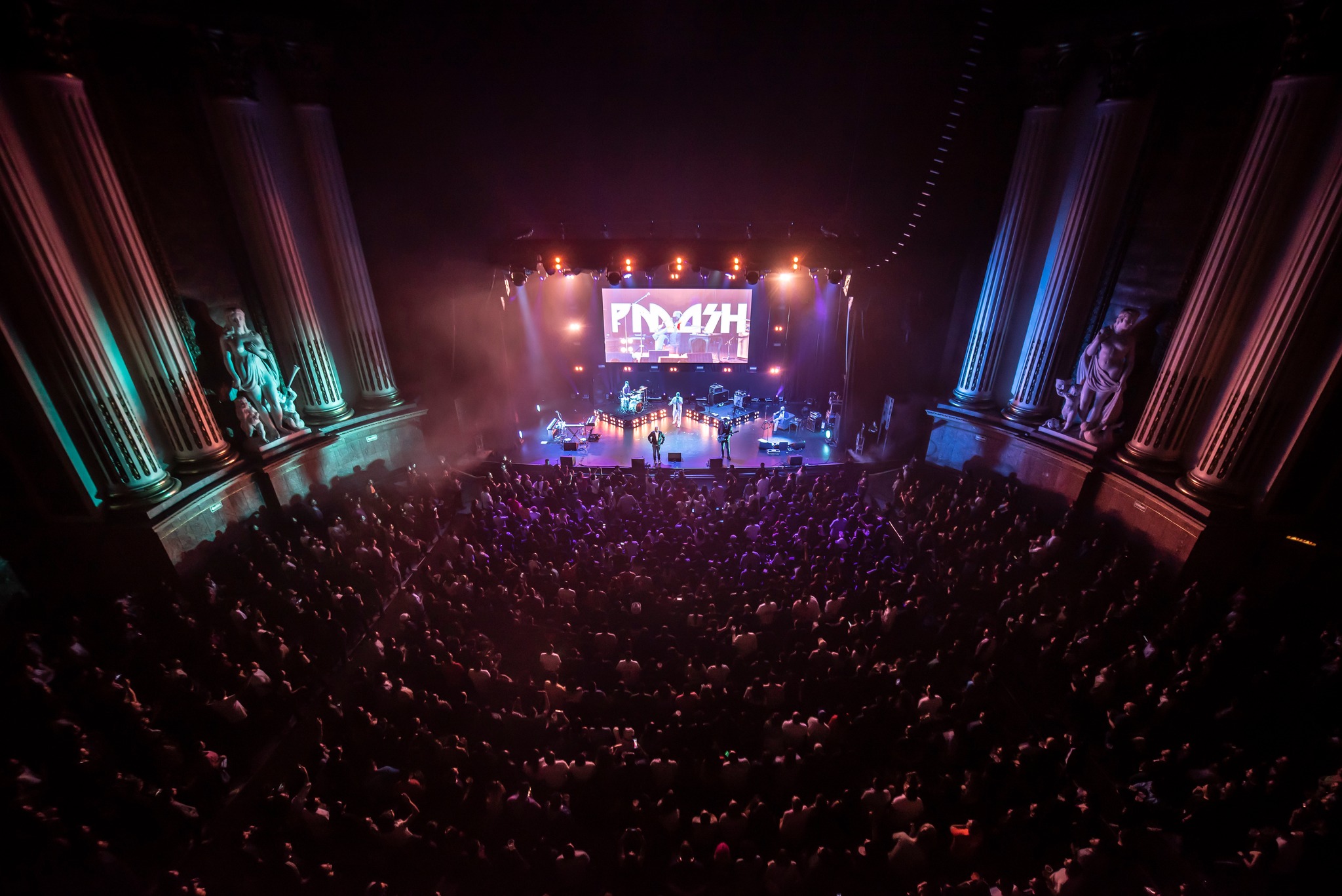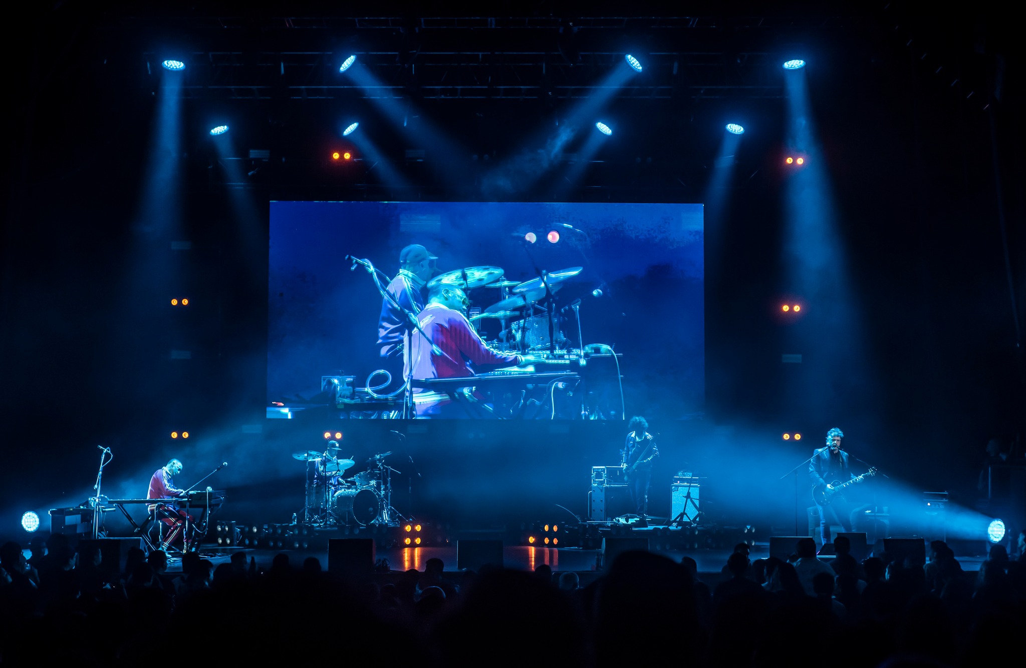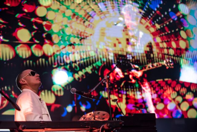 Otro aspecto que no pasó desapercibido fue el impecable trabajo de producción. El Teatro Metropólitan, conocido por su excelente acústica, permitió que el sonido de la banda se escuchara de manera cristalina. Cada elemento musical, desde las percusiones hasta los detalles electrónicos, fue proyectado con una nitidez que permitió apreciar todos los matices de las canciones. Además, el sistema de luces y proyecciones no solo complementó las actuaciones, sino que también creó un espectáculo por sí mismo, con patrones caleidoscópicos y secuencias visuales que aumentaron la intensidad del show.