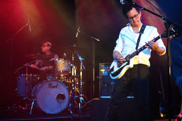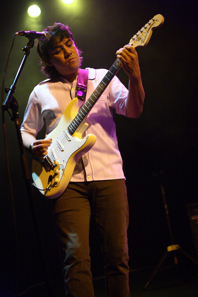 Así, con formato fullband el viaje empezó dando un buen repaso a lo cosechado desde 2016 con el EP Perro Viejo y el álbum Los Zopilotes: “El Animal”, “Los Amantes”, “Mestizo” y “Camisas”, pasada esa primera tanda de temas que hicieron cimbrar la estructura del venue, llegaron los de reciente manufactura: “Vespa” y “Ana” del álbum Vespa 97.