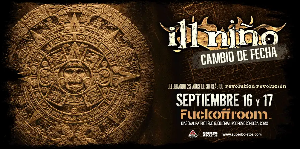 La banda de metal latino Ill Niño anuncia la reprogramación de su esperada presentación en la Ciudad de México. La nueva cita con el público mexicano será los días 16 y 17 de septiembre en Fuck Off Room, donde la banda ofrecerá dos noches intensas cargadas de la energía, potencia y el sonido característico que los ha convertido en un referente del latin metal a nivel mundial.