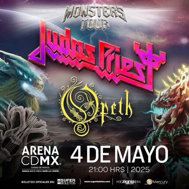 Judas Priest es una de las bandas británicas más emblemáticas de heavy metal que se formó en el año de 1969, que actualmente promociona su décimo noveno álbum de estudio: Invicible Shield. Mientras que Opeth se trata de un grupo sueco de metal progresivo que inició en el año de 1990 en Estocolmo con influencias de rock progresivo, jazz, blues y guitarras acústicas clásicas y folk.