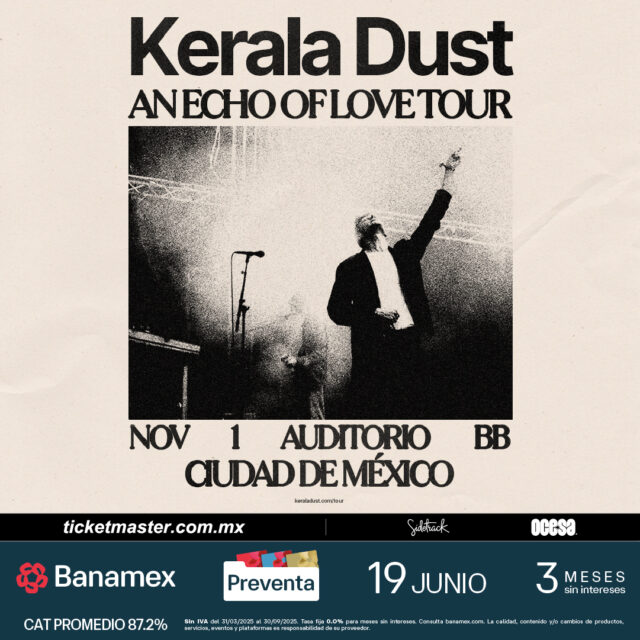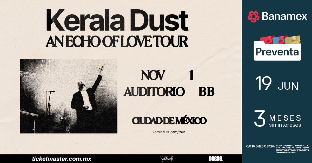 ¡No dejes pasar la oportunidad de sumergirte en el universo de Kerala Dust y ser de los primeros en escuchar su increíble nuevo álbum en vivo. ¡Corre por tus boletos para el 1º de noviembre en el Auditorio BB y prepárate para una experiencia musical que te moverá por dentro y por fuera!