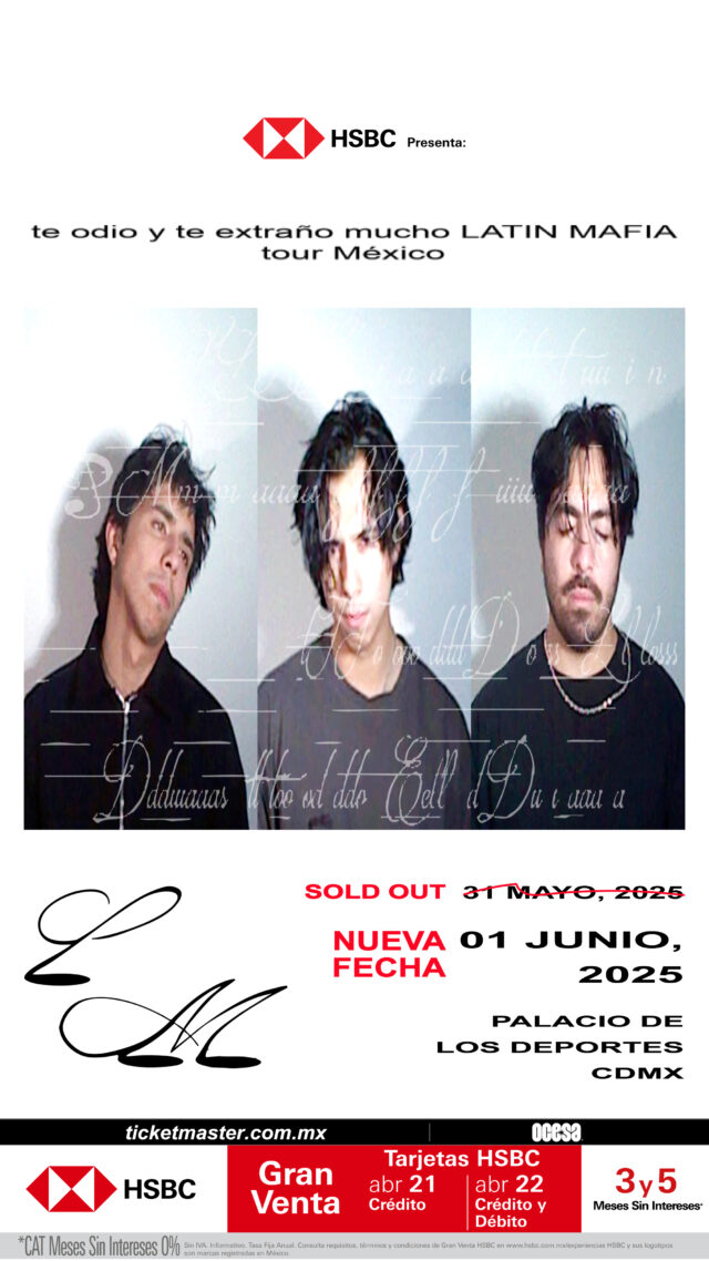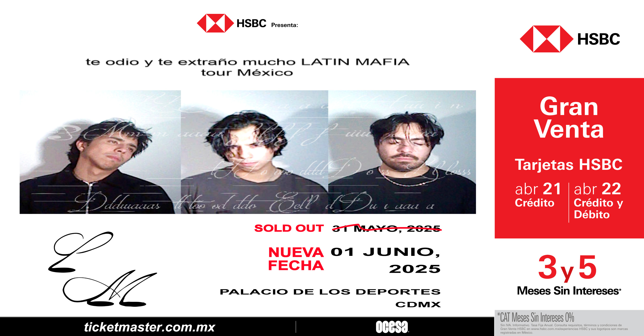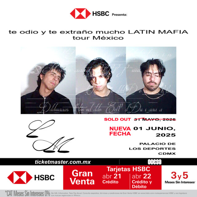 Esta gira representa la mejor oportunidad para que Latin Mafia y sus fans celebren juntos este momento crucial en su historia. Cada presentación será un espacio donde las emociones, la música y las experiencias convergen, creando recuerdos que perdurarán para siempre. Adquiere tus boletos en la Gran Venta HSBC a partir del 21 y 22 de abril, mientras que la venta general será un día después en las taquillas del inmueble o a través de Ticketmaster.
