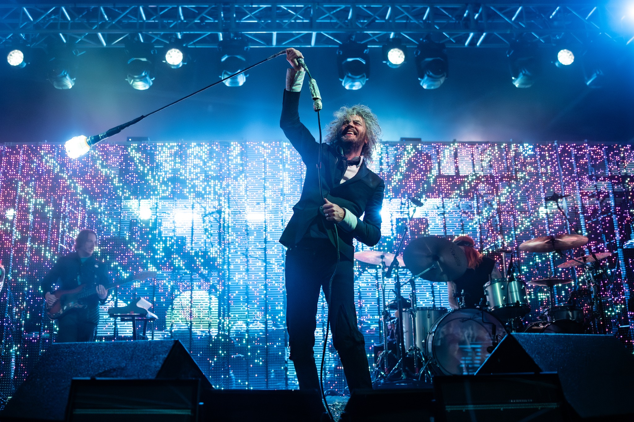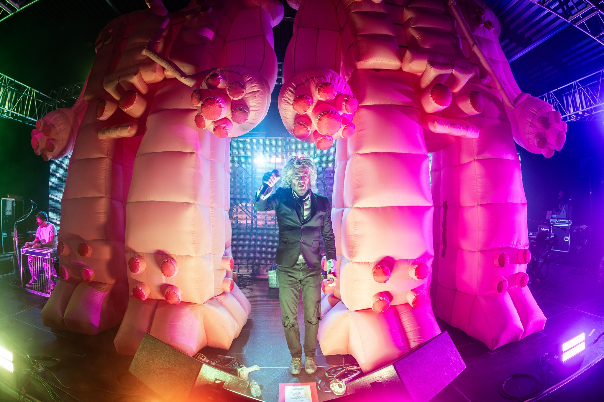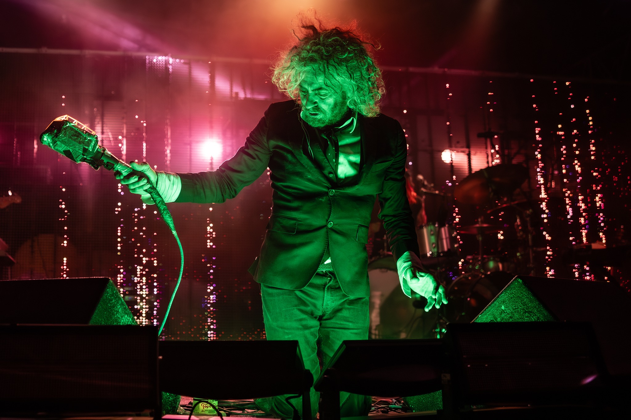Así, con todos los elementos que provocan una experiencia inmersiva, donde también se incluyeron peloTOtas gigantes, o inflables, también multicolores, el performance del cantante, guitarrista y compositor estadounidense, Wayne Coyne, superó cualquier expectativa que teníamos antes de llegar al venue de la colonia Granjas México, dando cátedra de lo que significa hacer música exuberante de cualidades espaciales, llena de capas de detalles y arreglos psicodélicos que te vacían el estómago y te hacen sentir (no exagero), cómo circula la sangre al rededor de las pantorrillas, la pura emoción que manifiesta el alma: “Sleeping on the Roof”, “Yoshimi Battles the Pink Robots, (Pt. 1 y Pt. 2), “Turn It On”, “The Golden Path” (cover de The Chemical Brothers), “True Love Will Find You in the End” (cover de Daniel Johnston); sorpresota para los fans de hueso colorado, con el estreno del tema “Every Drop of Rain That Falls Is You”, una balada de reciente manufactura, también disfrutamos de “The Yeah Yeah Yeah Song” (With All Your Power), “She Don’t Use Jelly” y “Do You Realize??”.